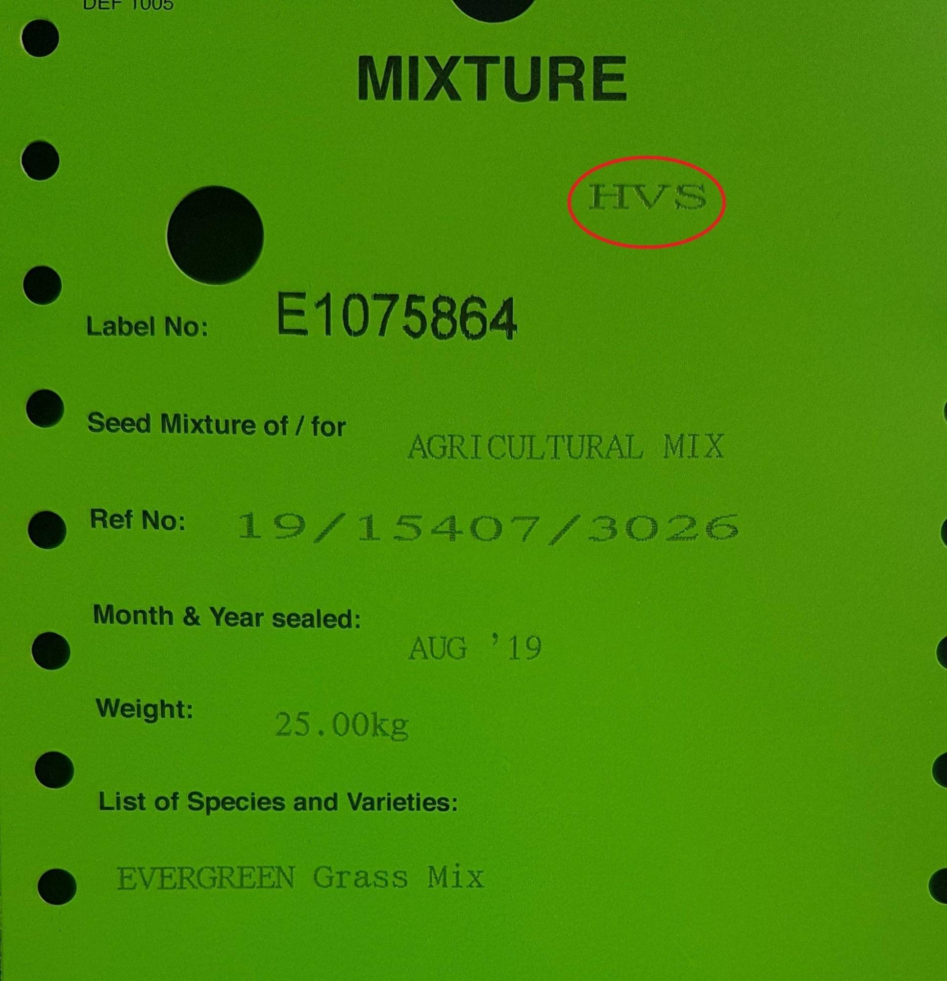 The lowest level is EU certification which is statutory throughout the whole of the EU and guarantees minimum quality standards for germination and purity below which seed cannot be sold. The higher standard which is unique to the UK is the HVS (Higher Voluntary Standard).